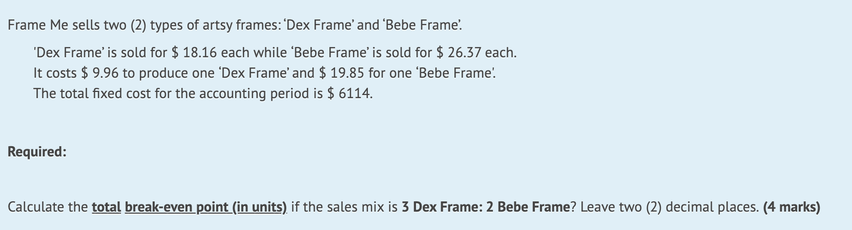 Solved Frame Me Sells Two 2 Types Of Artsy Frames Dex Chegg Com