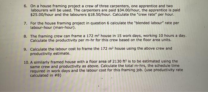 Solved 6 On A House Framing Project A Crew Of Three Chegg Com